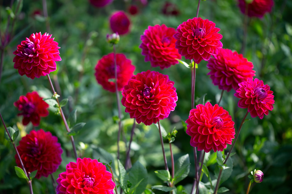 Les dahlias sont ceux avec le plus de critères de sélection : port de la plante, longueur de la tige, inclinaison et solidité de la fleur, la couleur, la forme ou encore la conservation en hivernage.