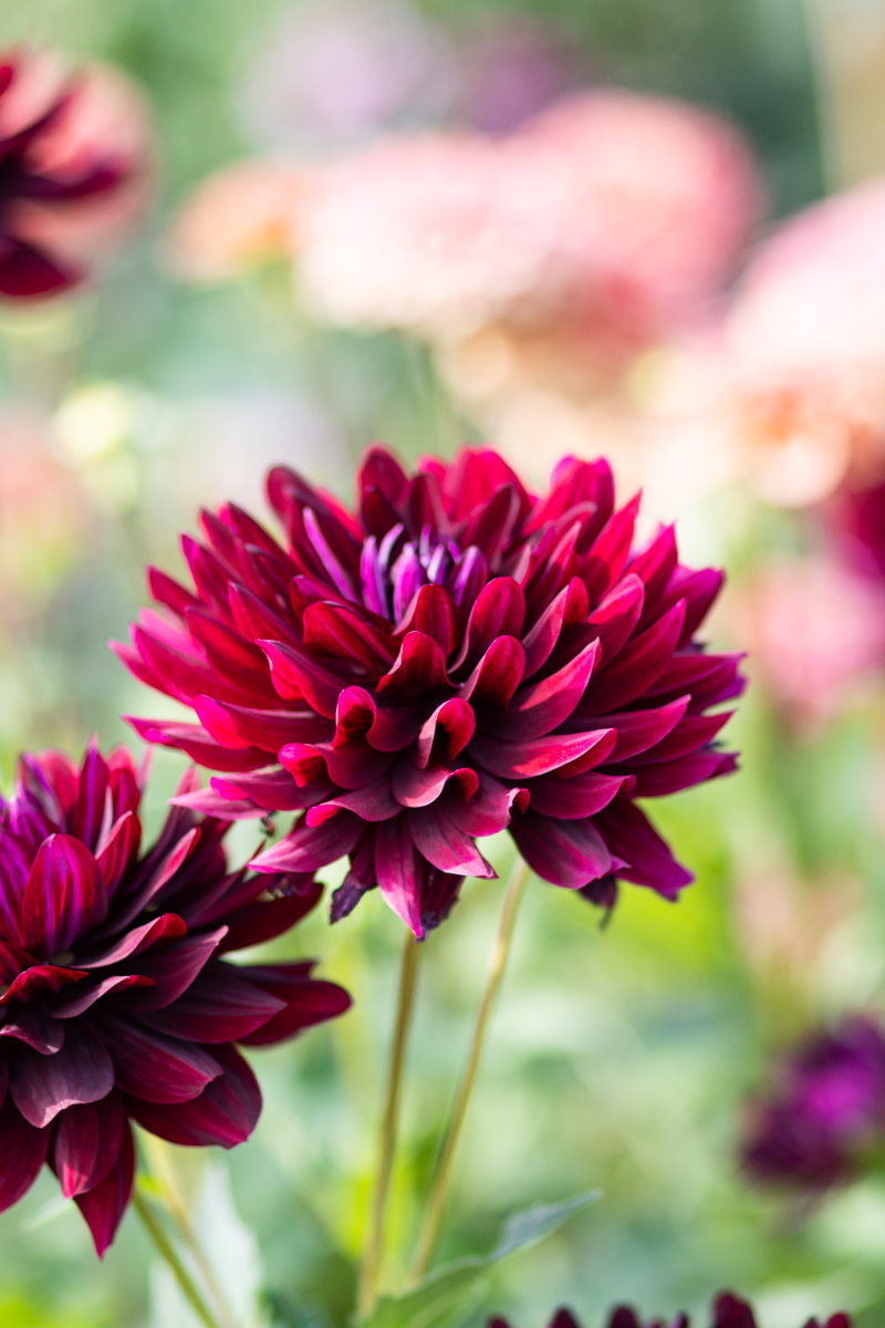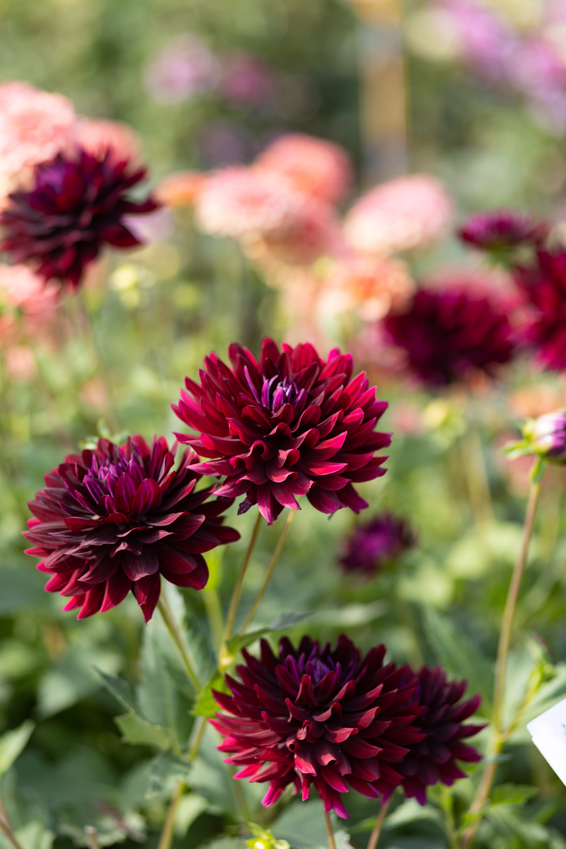 Les dahlias sont ceux avec le plus de critères de sélection : port de la plante, longueur de la tige, inclinaison et solidité de la fleur, la couleur, la forme ou encore la conservation en hivernage.