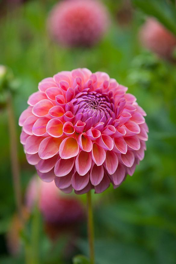 ‘Jowey Winnie’ a été un de mes premiers amours. Sa couleur est difficile à décrire ou à capturer en photo: rose ancien avec un sous ton pêche, veiné de pourpre. C’est un dahlia avec des sublimes fleurs très dense. Il est impératif d’en avoir plusieurs dans son jardin!