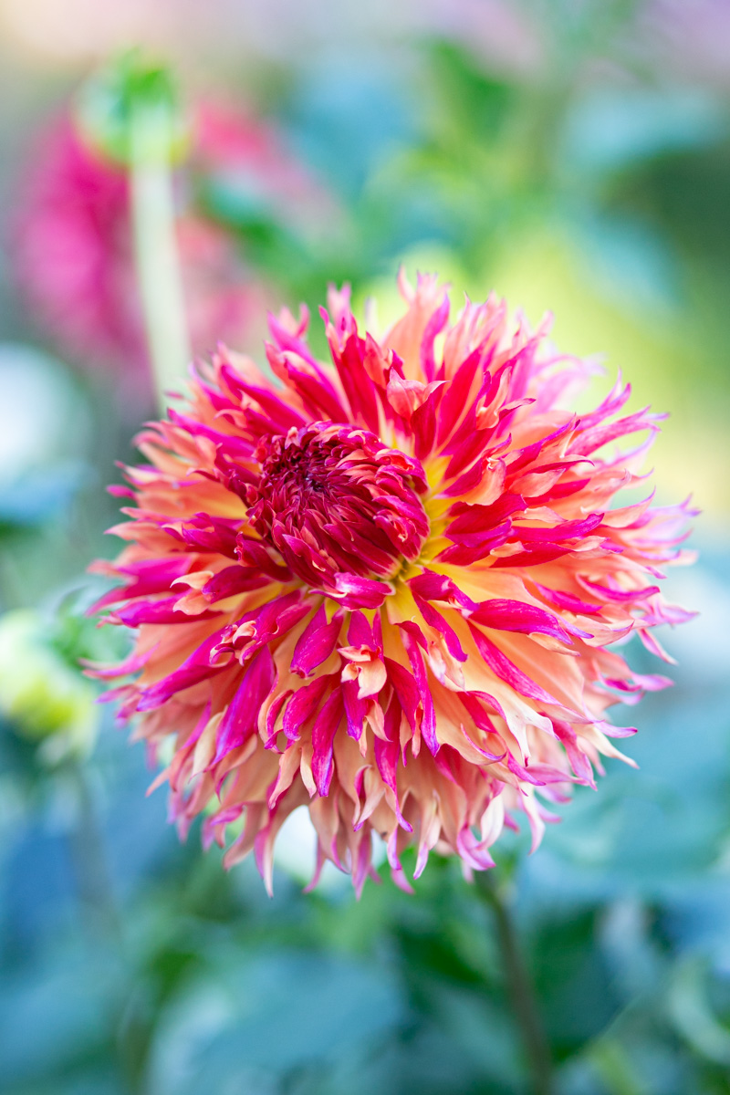 Dahlia géant dentelle d’une beauté exceptionnelle. Ses pétales abricot et framboise, finement découpés, donnent aux fleurs un aspect délicatement froissé. Superbe au jardin comme en bouquet.