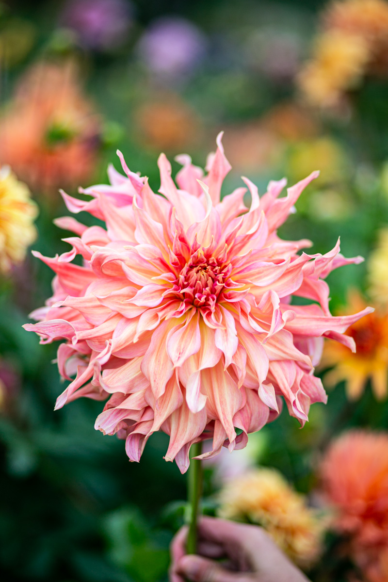 Les dahlias sont ceux avec le plus de critères de sélection : port de la plante, longueur de la tige, inclinaison et solidité de la fleur, la couleur, la forme ou encore la conservation en hivernage.
