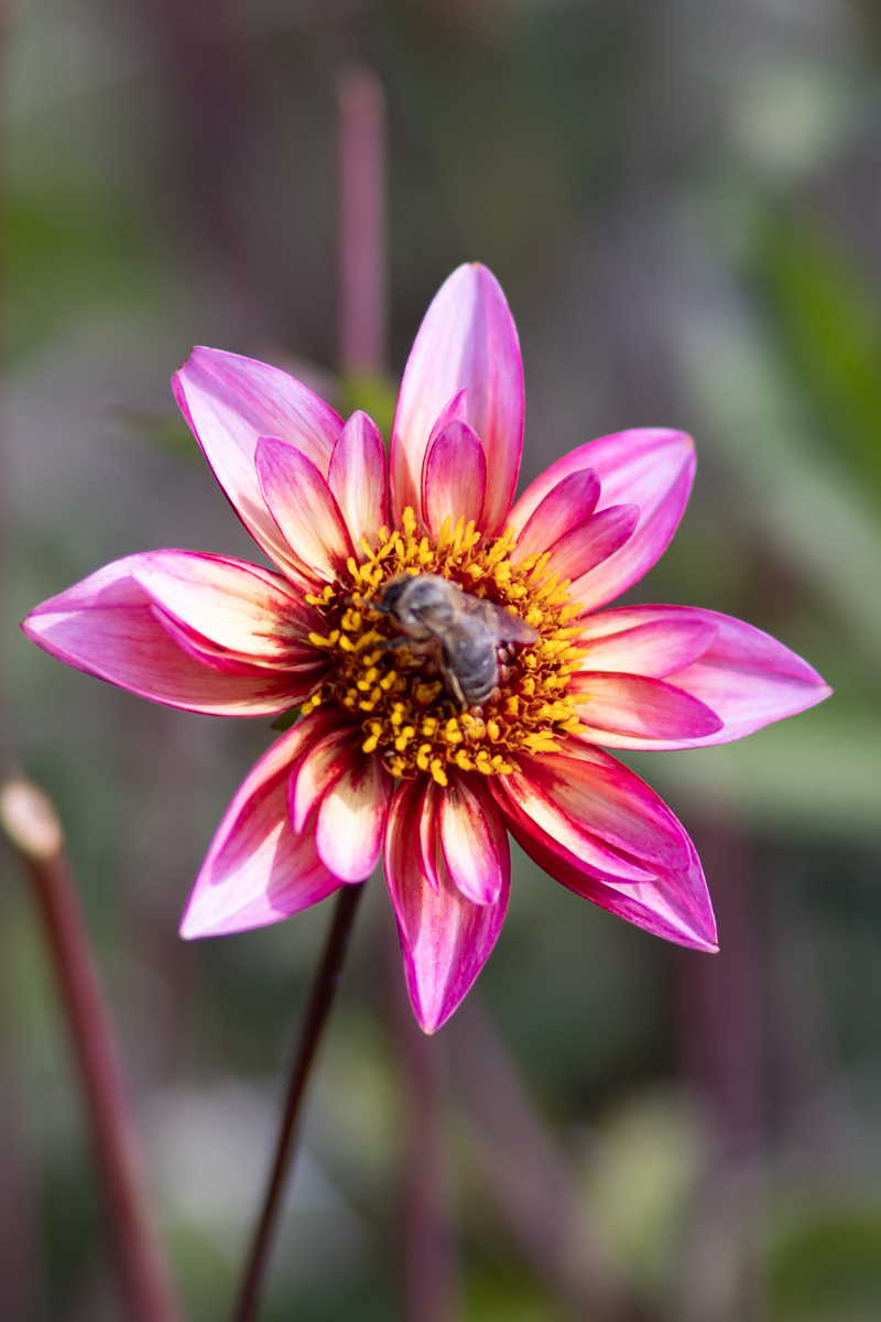 D’une rare délicatesse et d’une floribondité unique, ce dahlia pourpre orangé, se plaira tout autant en peine terre qu’en pot . Idéal pour les insects polinnisateurs.